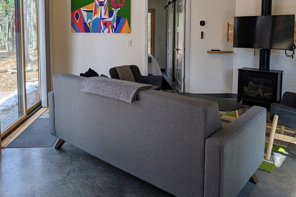 The cabin is brimming with useful amenities including Public Goods toiletries (100% recycled, post consumer plastic bottles and sustainable non-toxic ingredients), Standard Textiles linens and towels, unwavering commercial furniture, walk-in showers, games and a smart TV (bring your passwords!). We have spices stocked, coffee and tea ready, and an abundant amount of dishes and cookware.