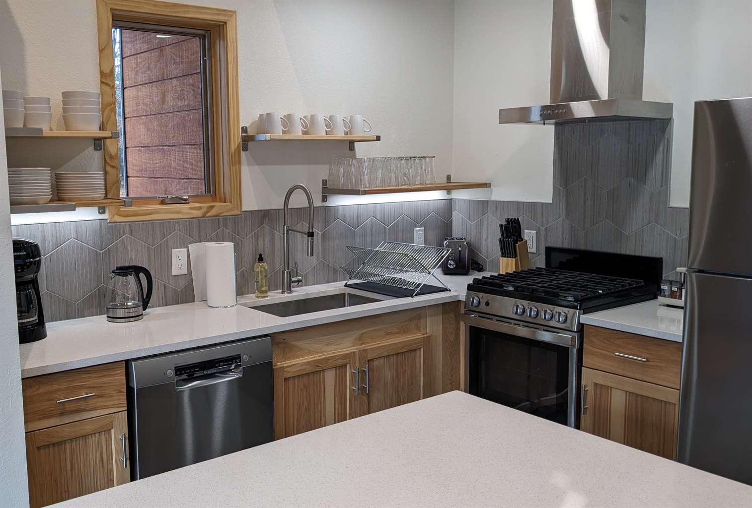 The cabin is brimming with useful amenities including Public Goods toiletries (100% recycled, post consumer plastic bottles and sustainable non-toxic ingredients), Standard Textiles linens and towels, unwavering commercial furniture, walk-in showers, games and a smart TV (bring your passwords!). We have spices stocked, coffee and tea ready, and an abundant amount of dishes and cookware.